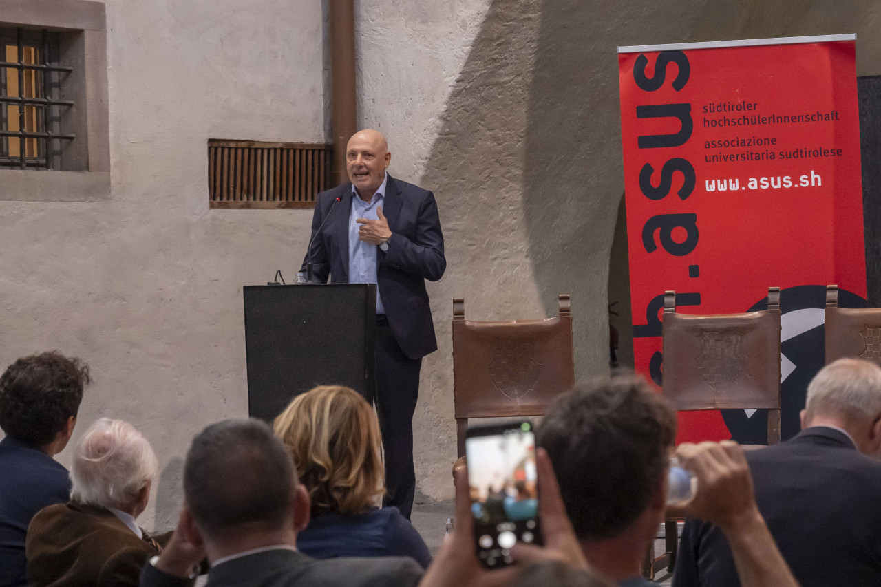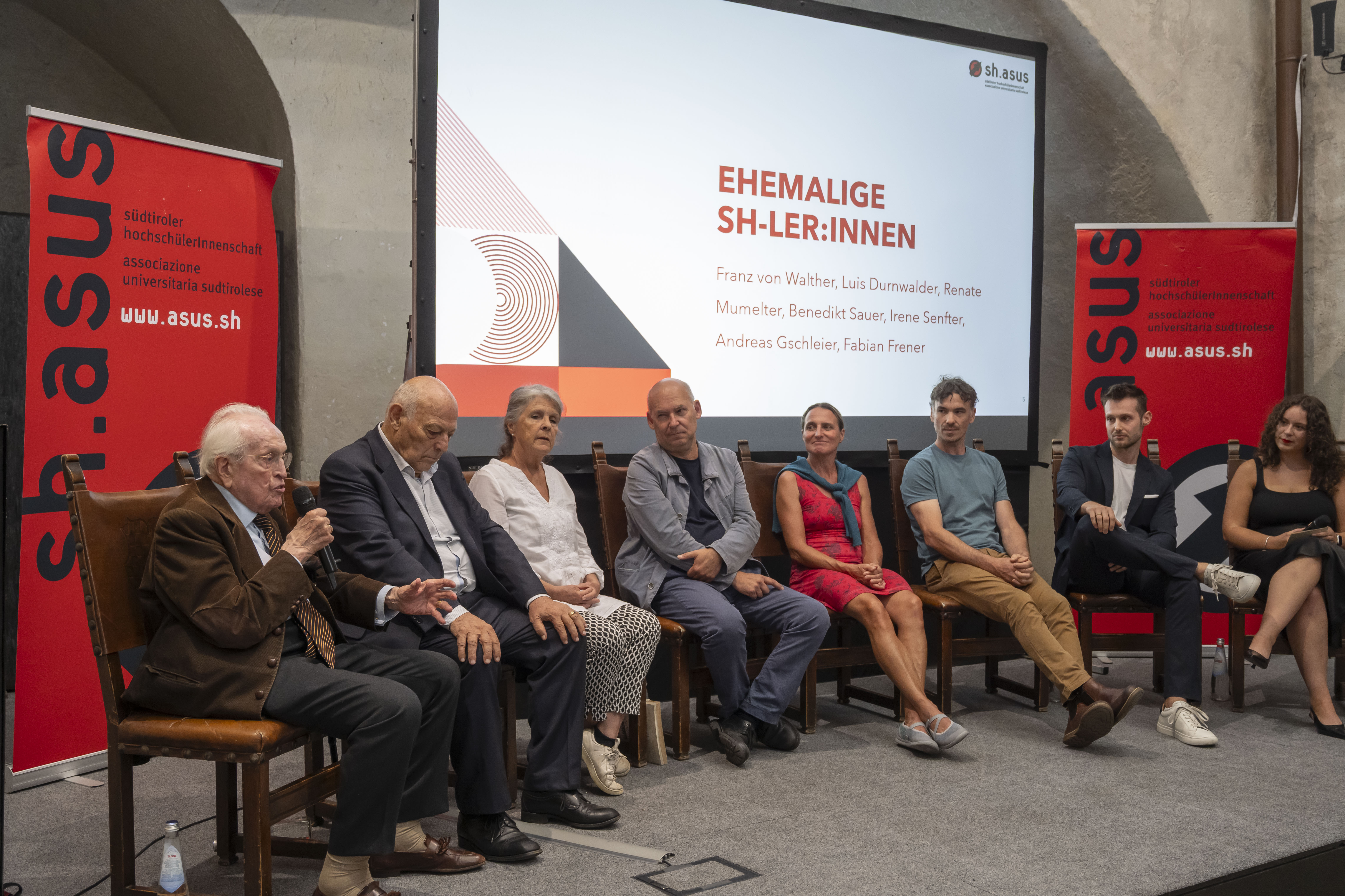 Die Sonne fällt auf die lachenden Gesichter der Studiosi, die sich im Hof von Schloss Maretsch wiedersehen. Das 70 Jahre Jubiläum der Südtiroler HochschülerInnenschaft – sh.asus – bedeutet für die Anwesenden merklich ein feierliches Wiedersehen. Die junge Garde der Hochschülerschaft kommt noch einmal zusammen, bevor die Wege sie in die verschiedenen Studienstädte im In- und Ausland führen. Sie kann nicht umhin, ihrer Freude in Gelächter und lebhaften Diskussionen Ausdruck zu verleihen. Auch die alte Garde tut es ihnen gleich. Lautes Murmeln erfüllt die Hallen des altehrwürdigen Gemäuers. In der ersten Reihe sitzt – ganz allein und in Gedanken versunken – Franz von Walther, der erste Vorsitzende der Südtiroler HochschülerInnenschaft.