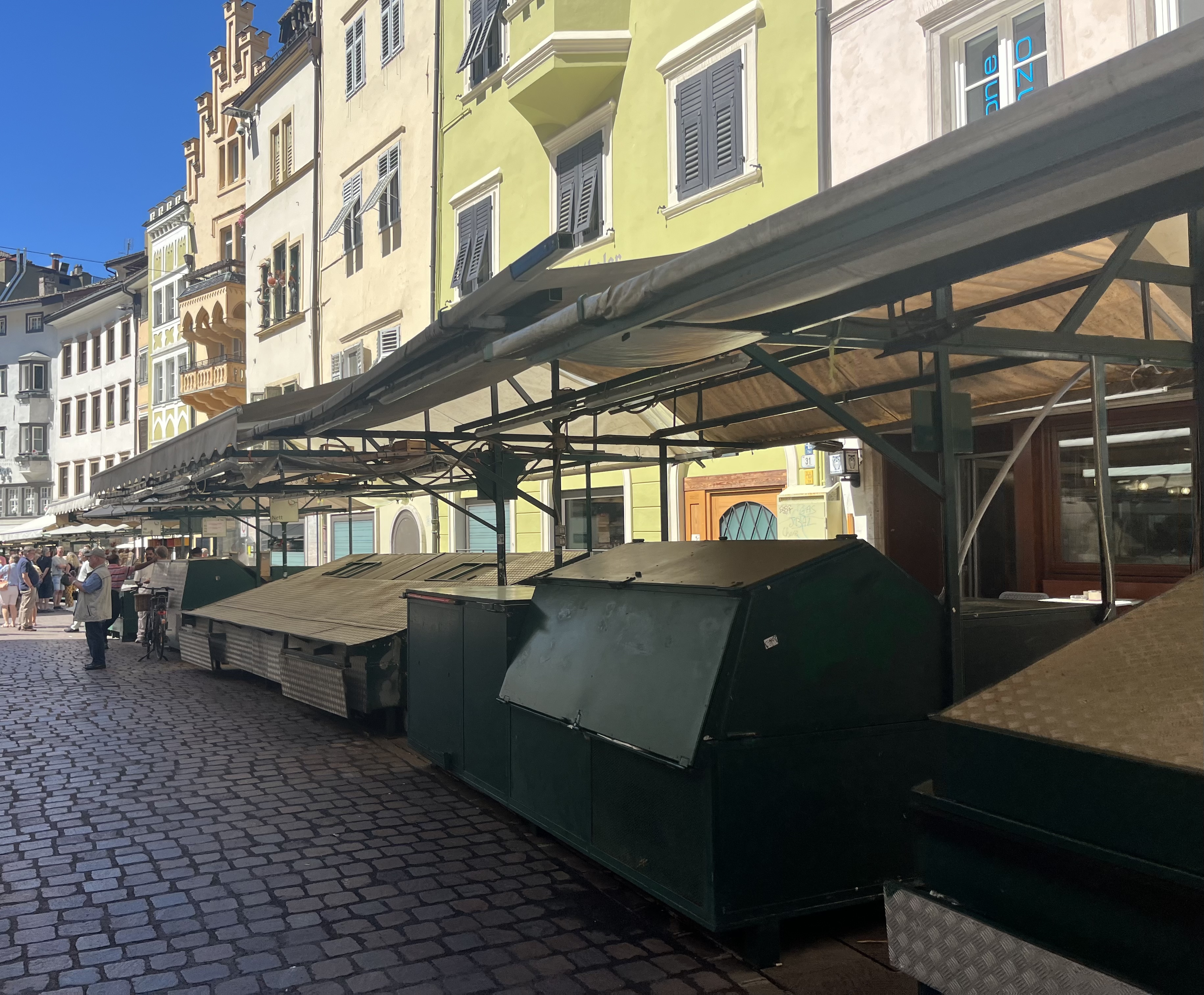 Am gestrigen Montag blieben die Stände mit Trockenobst und Gewürzen am Obstplatz in Bozen geschlossen. Grund hierfür war ein Protest der Betreiber, die sich Sorgen um ihr wirtschaftliches Überleben machen, sollten sie sich an die Regelung der Gemeinde halten. Konkret geht es um eine Vorschrift, die besagt, dass Trockenobst lediglich 20 Prozent des Gesamtsortiments ausmachen darf. Die entsprechenden Händler wollen das so nicht hinnehmen, zumal sich ihre Ware großer Beliebtheit erfreue und somit ihre wirtschaftliche Existenz sichere.