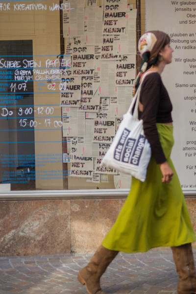 Eigentlich ist Schere Stein Papier sowohl bei Kindern als auch bei Erwachsenen ein beliebtes und weltweit verbreitetes Spiel. Im zeitgenössischen Mantel der beiden Macherinnen ist es natürlich mehr, mehr sogar „als ein kreatives Projekt – es ist ein Statement“, sind Obwexer und Pallhuber überzeugt. Initiiert von den beiden jungen Grafikdesignerinnen und Absolventinnen der Fakultät für Design und Künste an der Freien Universität Bozen, vereint Schere Stein Papier ihre Abschlussarbeiten zu einer gemeinsamen Vision, nämlich „eine Plattform zu schaffen, die kulturelle Vielfalt sichtbar macht, kritisches Denken anregt und Räume für Dialog eröffnet.“ Was entstanden ist, „ist ein analoger Rundbrief, resultierend in einem A3 Poster, der sich bewusst gegen die digitale Schnelllebigkeit stellt und für nachhaltige kulturelle Auseinandersetzung eintritt.“ Am vergangenen Freitag feierte Schere Stein Papier in der Fußgängerzone von Schlanders seine Premiere im schaufenster* der BASIS Vinschgau Venosta. Die erste Ausgabe, die sogenannte Nullnummer, trägt den dialektalen Titel: Wos dor Bauer net kennt. (A.d.R.: Was der Bauer nicht kennt)