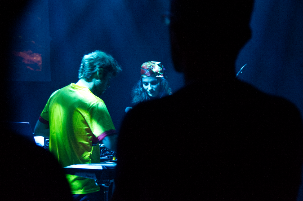 Casera und Guefif haben einen ganzheitlichen Zugang zu ihrer Kunst. Wie aus den bisher erschienenen Videos klar hervorgeht, ist die viduelles Seite des Projektes gleich wichtig wie die Musik und die Texte. Das sollte sich in der Live-Performance, die nach der Diskussion gegen 21 Uhr begann, auf allen Ebenen bestätigen.