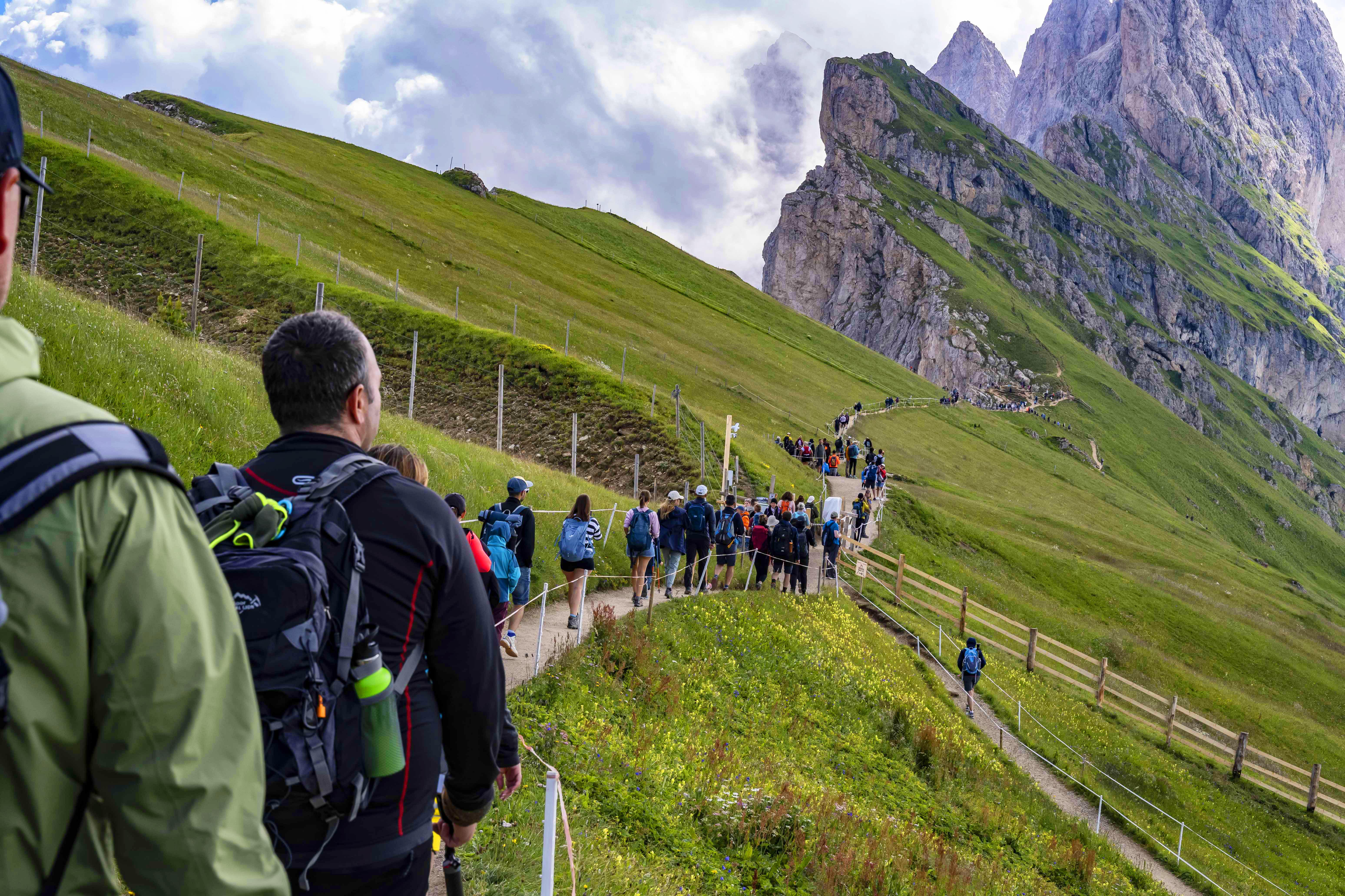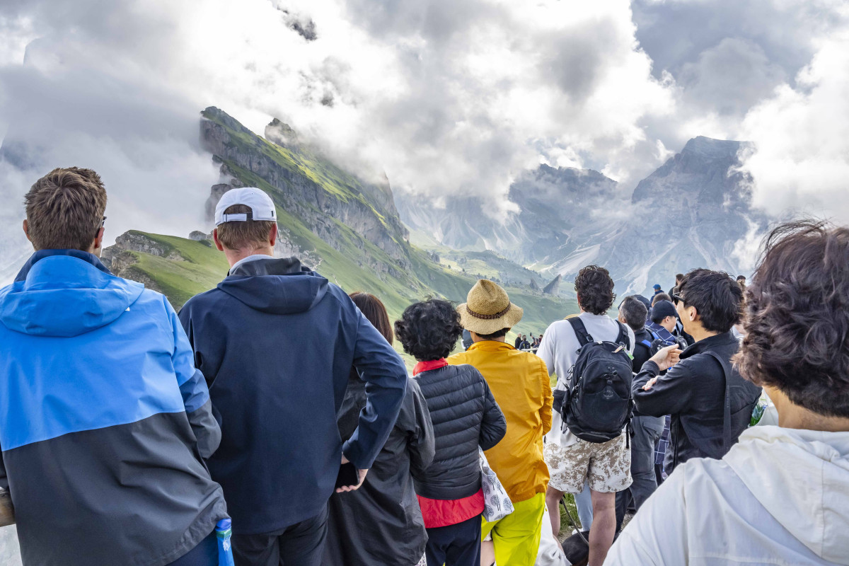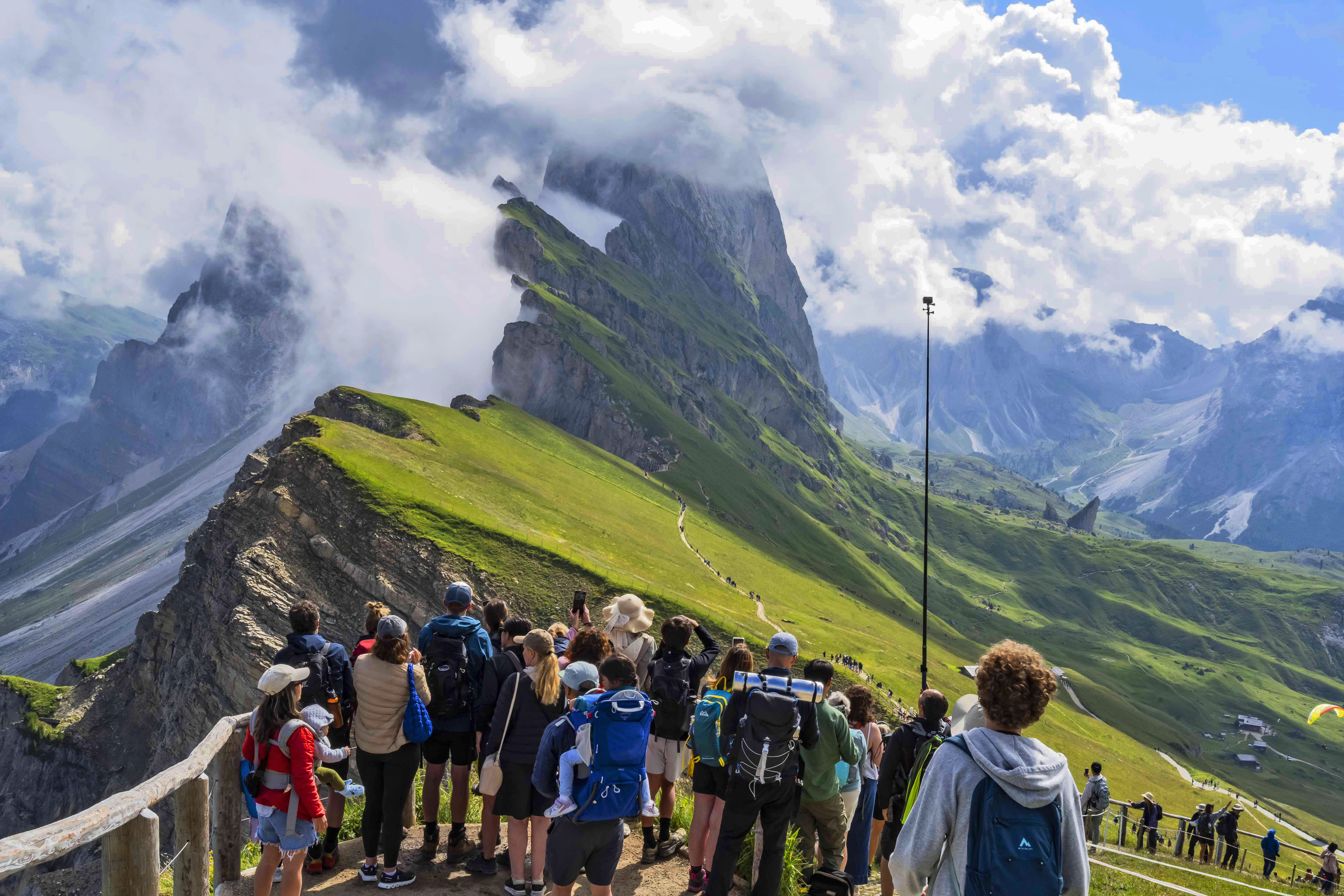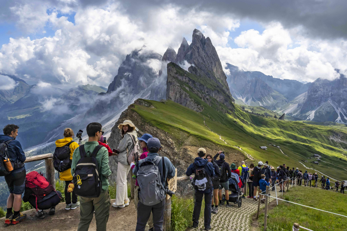 File interminabili nelle stazioni a valle, vocìo tipo al mercato anche in aperta montagna, droni che ronzano, selfie stick che spuntano da nugoli di teste alla ricerca dell’angolatura migliore. Le scene distopiche che negli ultimi giorni hanno visto come protagonista il Seceda sono diventate virali ovunque. Tutti sui social a indignarsi per l’overtourism, ma, ironia della sorte, foto e filmati, invece che avere un effetto dissuasivo, potrebbero addirittura portare nuovi turisti bisognosi di far sapere al mondo di essere stati per qualche istante nel luogo più instagrammato delle Dolomiti. L’esperienza non vale se non è mostrata, convertita in pixel e like, e chissnefrega se c’è chi sbuffa e deride. Una situazione definita da tutti oltre il limite, che presto in Gardena potrebbe trovare una soluzione come “il numero chiuso” al lago di Braies. “A nessuno va bene questa situazione”, dice pure il presidente della Giunta provinciale Arno Kompatscher. Quindi si metterà “la pezza” pure in val Gardena, ma poi? Secondo un recente studio, l'Alto Adige è oggi la terza destinazione europea per intensità turistica. Un dato che non sorprende chi conosce i numeri reali delle presenze in rapporto alla popolazione residente, ma che dovrebbe indurre a qualche riflessione seria sul modello di sviluppo. Dovrebbe. Ma non è così.