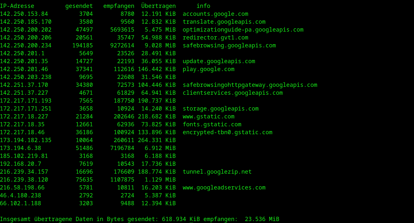 Das heißt, all diese IP-Adressen sind von Google/Meta, die nun Kenntnis über meinen Prüfling und Teile meines Netzwerks haben.