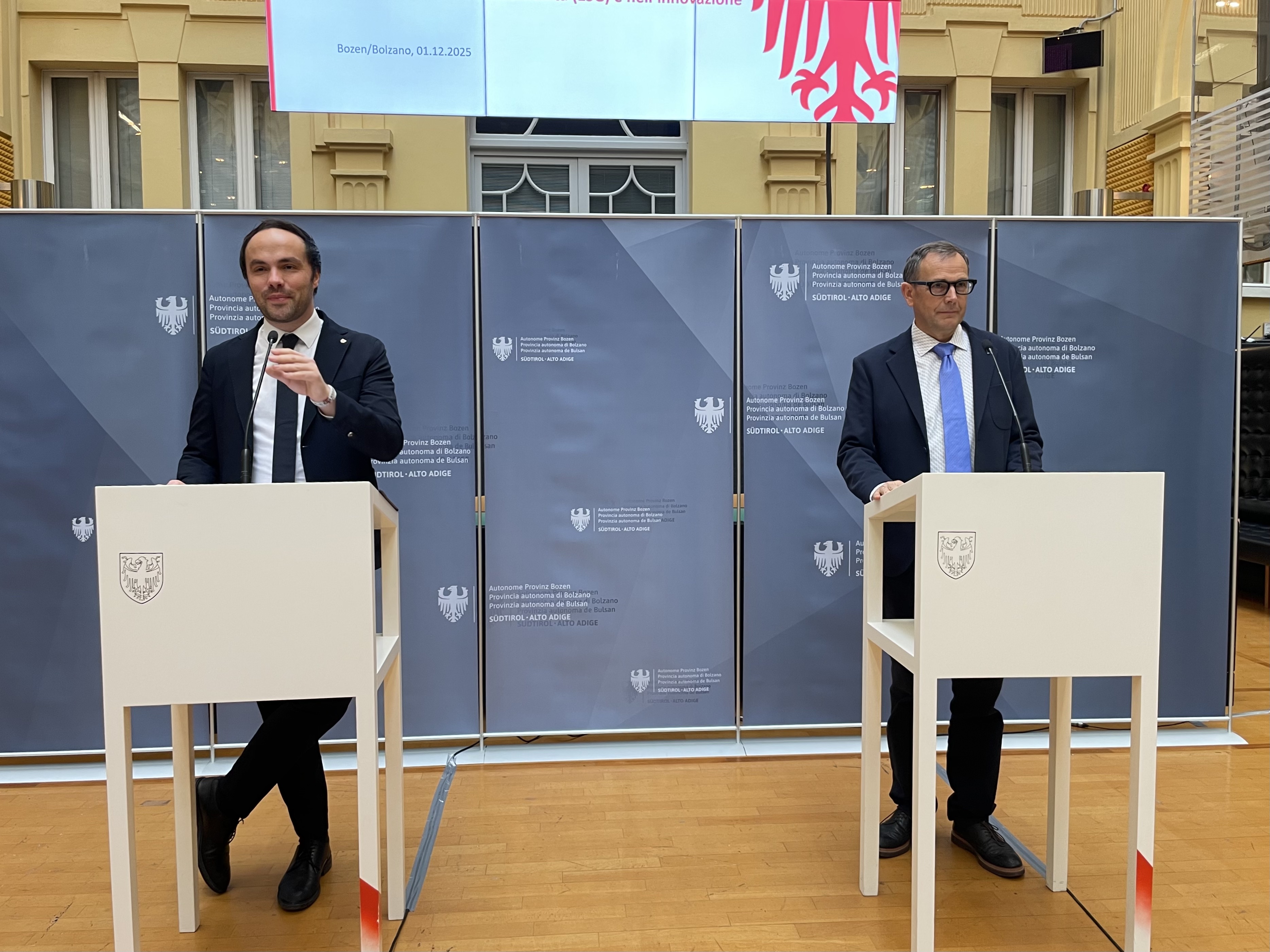 Jetzt S+ abonnieren!Mit einer neuen Offensive will das Land Südtirol Unternehmen zu Investitionen in Nachhaltigkeit und Innovation motivieren. Landesrat Philipp Achammer und Abteilungsdirektor Franz Schöpf präsentierten heute die neuen Richtlinien, die erstmals Zinsbeiträge für Unternehmensfinanzierungen vorsehen. Ziel sei es, den Betrieben einen zusätzlichen Anreiz für Investitionen zu geben – gerade in wirtschaftlich unsicheren Zeiten.