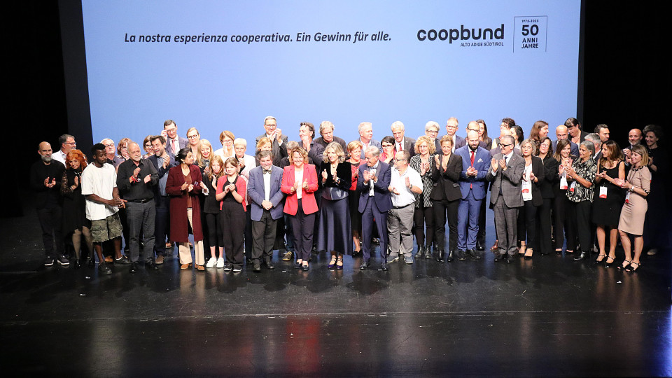 Coopbund Alto Adige Südtirol hat im Bozner Haus der Kultur „Walther von der Vogelweide“ mit aktiver Einbindung aller Anwesenden seine „ersten“ 50 Jahre gefeiert. Seit einem halben Jahrhundert vereint der Vertretungsverband Genossenschaften unterschiedlichster Art, die allesamt tagtäglich an der Bewältigung zentraler gesellschaftlicher Herausforderungen arbeiten: Beschäftigung, Integration, Dienstleistungen, Wohnbau, Handel, Landwirtschaft und vieles mehr.