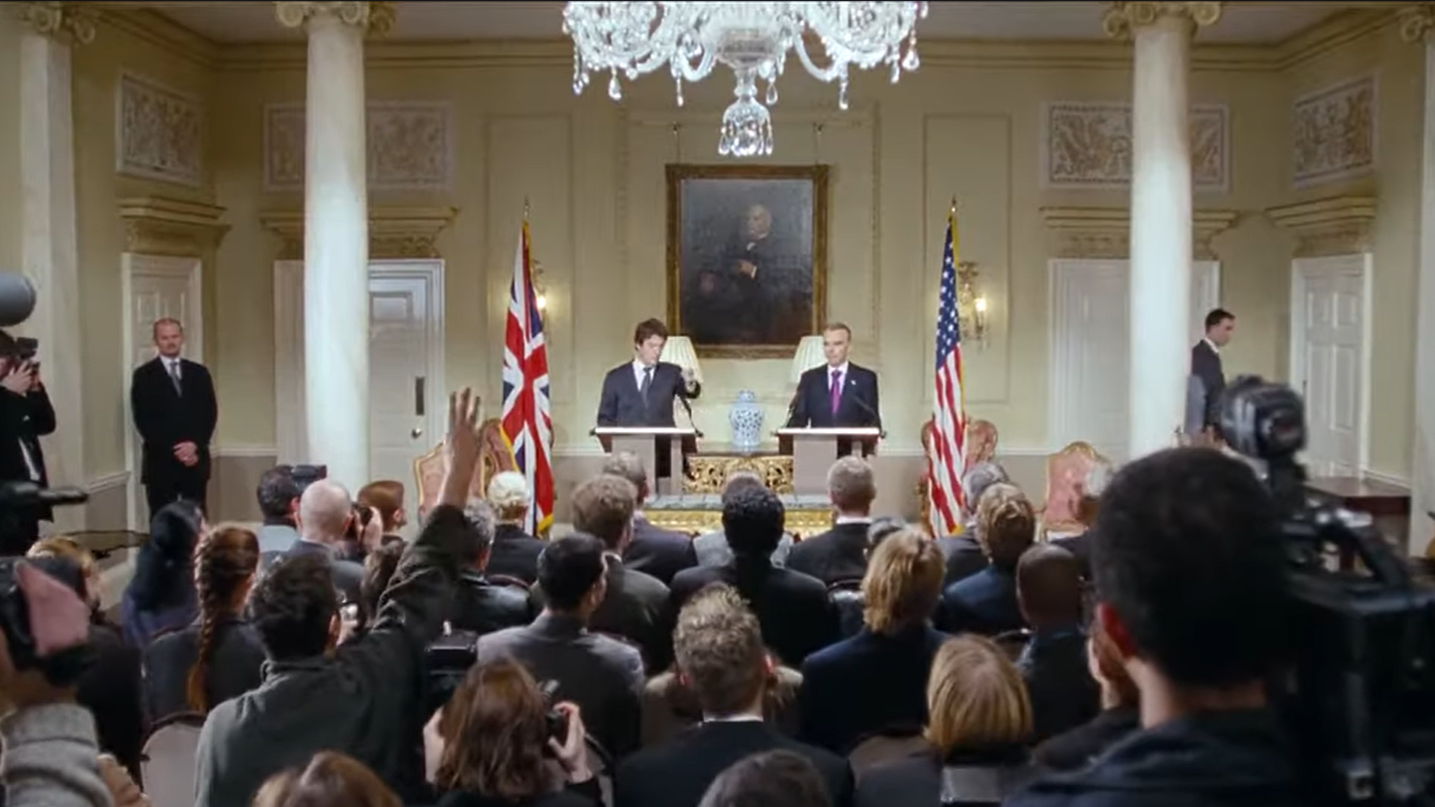Zuvor hat nämlich der amerikanische Präsident die Catering Managerin der Downing Street Number 10 belästigt. Großbritannien, so Hugh Grant als englischer Premier, sei zwar klein, aber auch groß. „Das Land von Shakespeare, Churchill, den Beatles, Sean Connery, Harry Potter, David Beckhams rechten Fuß und nebenbei auch David Beckhams linken Fuß.“ Aber ein Freund, der den anderen schikaniert und belästigt, sei kein Freund mehr, sondern ein Tyrann und weil Tyrannen nur Härte verstehen, werde er, der Premierminister nun sehr viel härter sein und der amerikanische Präsident tue gut daran, darauf vorbereitet zu sein.