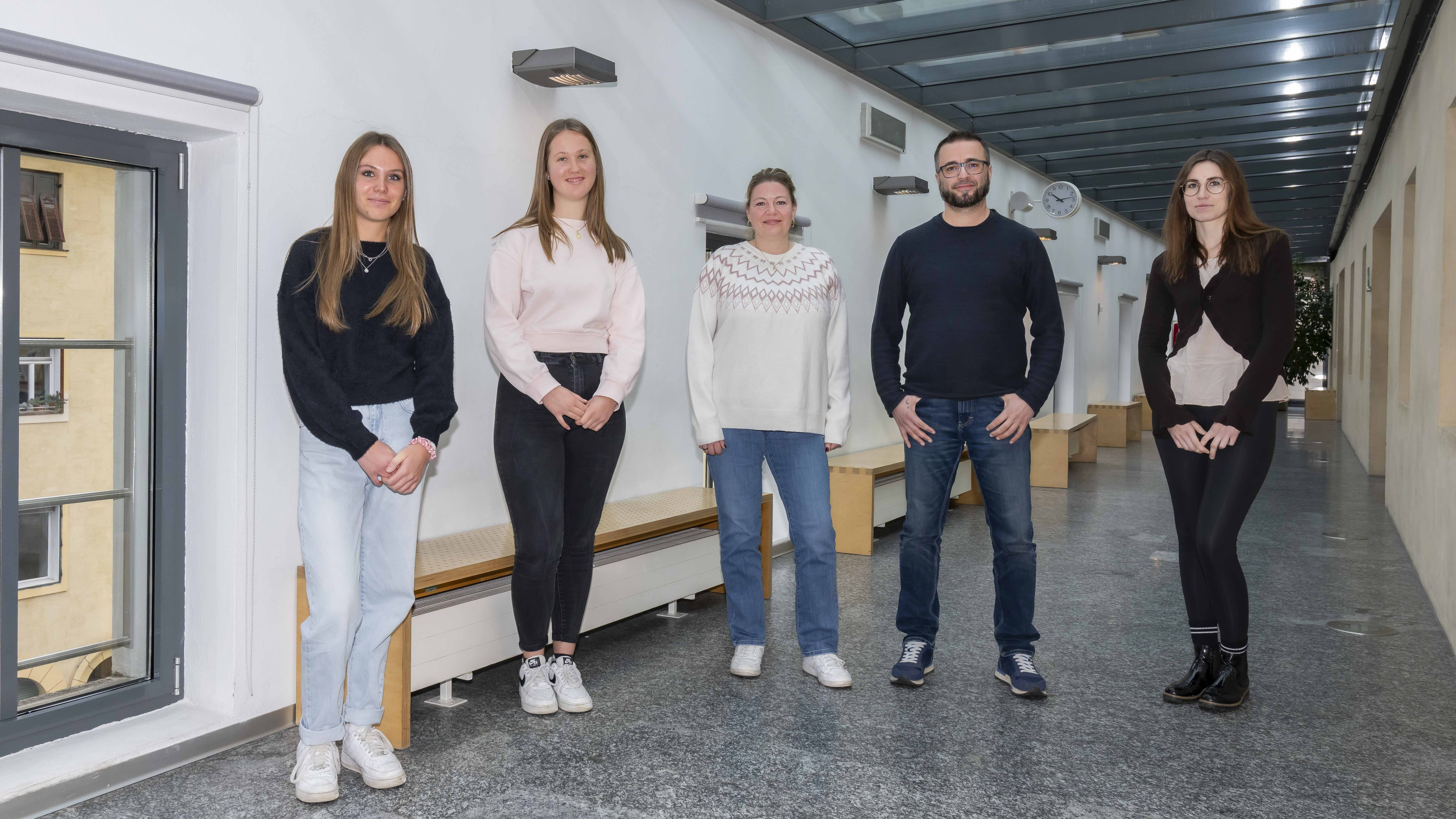 Vier Pflegehelferinnen und ein Pflegehelfer in Ausbildung erklären, wieso sie die Landesfachschule für Sozialberufe „Hannah Arendt“ in Bozen besuchen. In einem sind sie sich einig: Soll der Fachkräftemangel in der Pflege gesenkt werden, brauche es faire Löhne in der Branche.