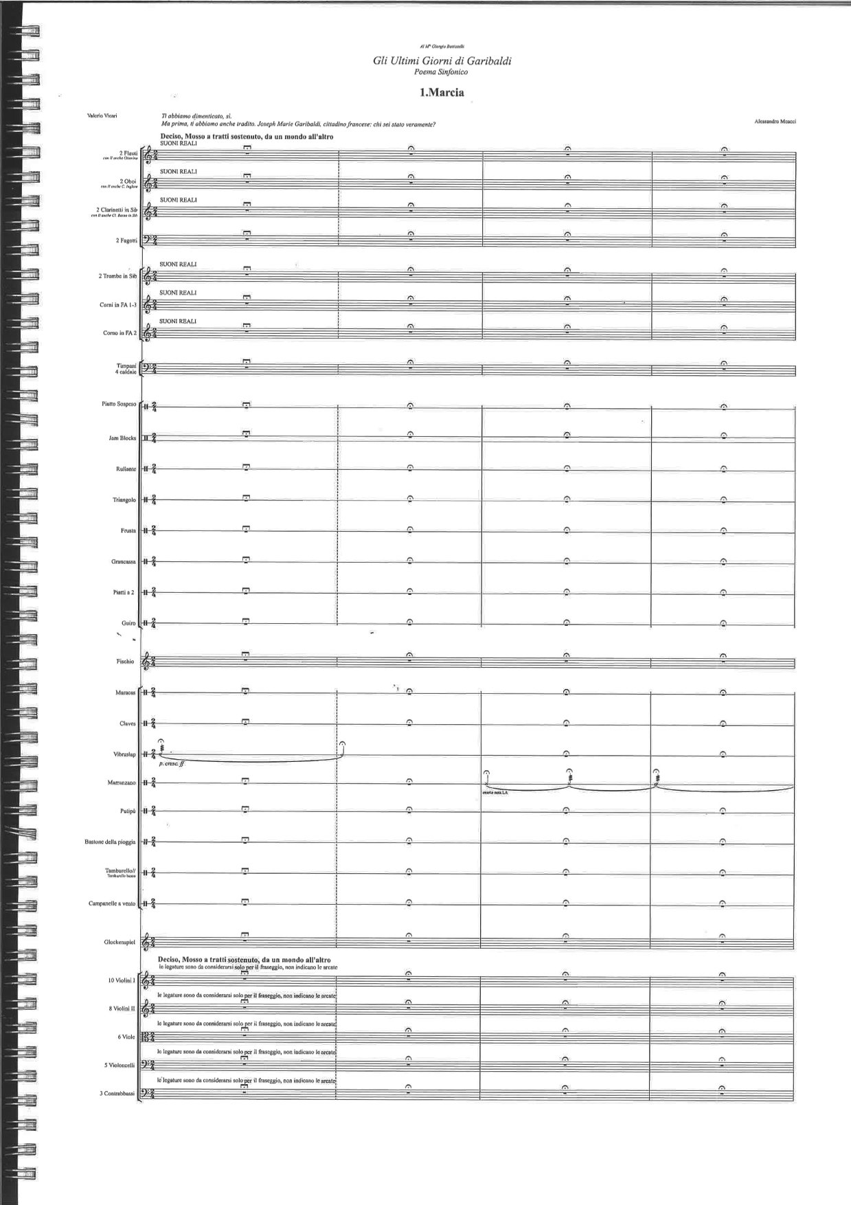 È una partitura che lavora sulla sottrazione, sulla memoria del suono. Ho cercato di scrivere come se la musica fosse già un ricordo, e non fosse solo musica, ma tutto avesse carattere descrittivo, come se Garibaldi stesso parlasse da un luogo oltre il tempo. Ampio spazio viene dato alle percussioni, mia particolare passione, che sono distribuite secondo una geografia dei suoni: America Latina e Sud Italia, con ritmi ed idiomi tipici del folklore con gli immancabili marranzano e putipù. Chi ha potuto sfogliare la partitura in anteprima mi ha detto che si avverte la caducità dell’Italia verista, dagli scorci di Franco Alfano ma anche scenari cinematografici del secondo novecento. Per mia cifra stilistica non rinuncio mai alla melodia. In questo sono orgogliosamente italiano.